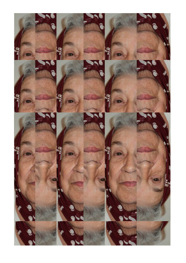 La troisième famille sera celle de la famille 1 imprimée sur la famille 2. Autrement dit, dans le cas de tante Alice, on aura Alice en petits carrés, telle que ci-contre sur la photo, imprimée la tantine sur les fonds de serviette de table.