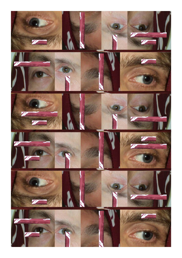 Cette mosaïque doit son existence à la participation amicale de ma sœur dont on voit le sourcil, de ma collègue préférée maintenant retraitée, d’un collègue que je connais moins mais qui a accepté de participer en enlevant de surcroît ses lunettes à ma demande, et d’un animateur scout que je ne connais pas du tout.