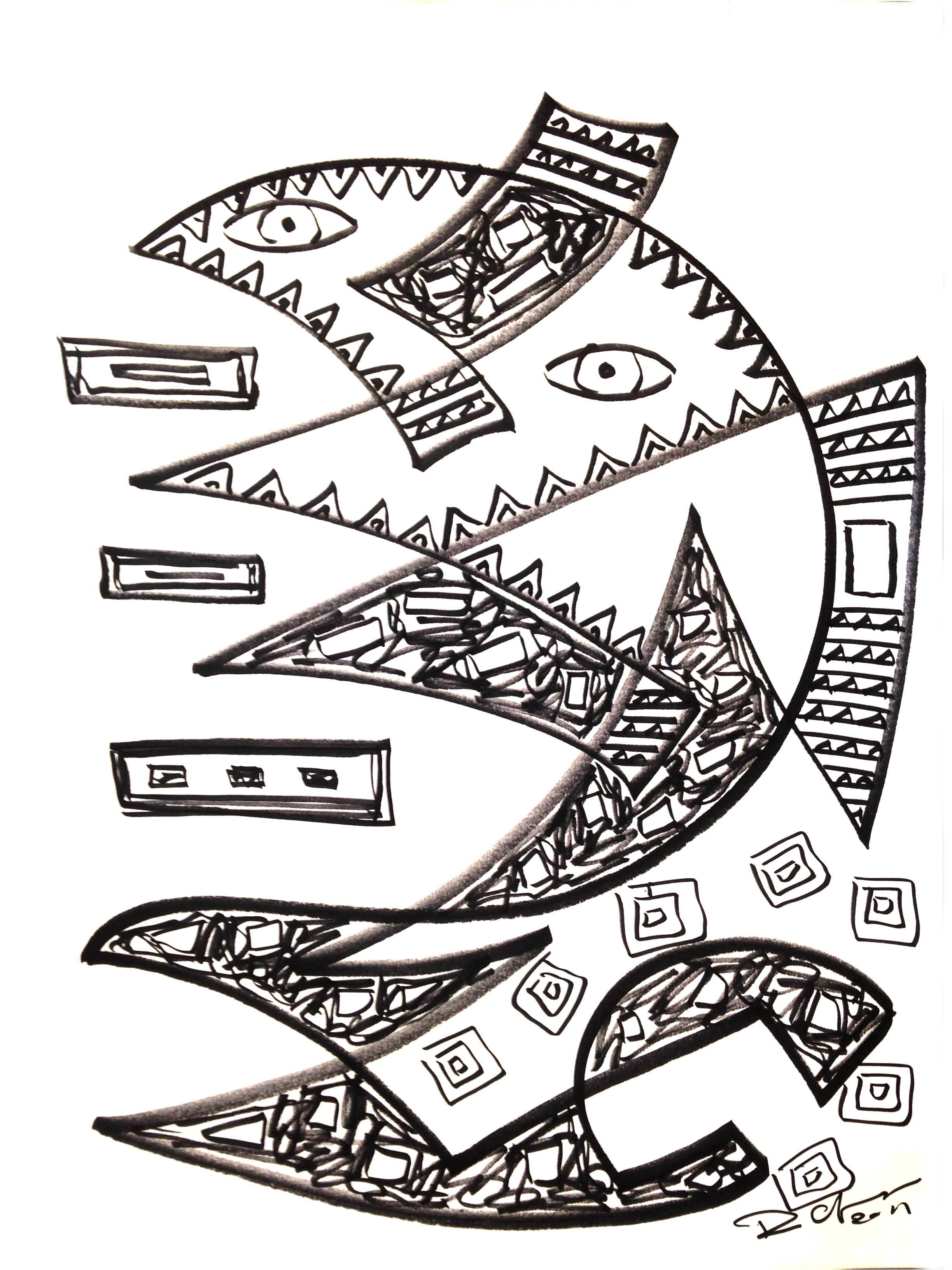 Voici le dessin que j’ai acheté hier de l’homme artiste qui m’a embrassée sur chaque joue dans l’autobus. Ouille, je n’ai plus l’habitude et sa barbe m’a piqué la peau !