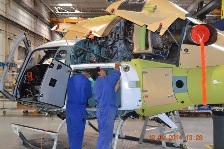 La première journée de notre séjour en Ontario était réservée à la visite des installations de l’usine Airbus à Fort Érié. L’événement a drainé un nombre important de gens vêtus de noir, comme en témoigne la maigre grappe sur ma photo –l’essentiel du bataillon suivant derrière. Plus exotiques, pour une néophyte comme moi en aéronautique, étaient les gens vêtus de bleu puisqu’ils maîtrisaient le cœur même de l’affaire, à savoir les machines et les moteurs.