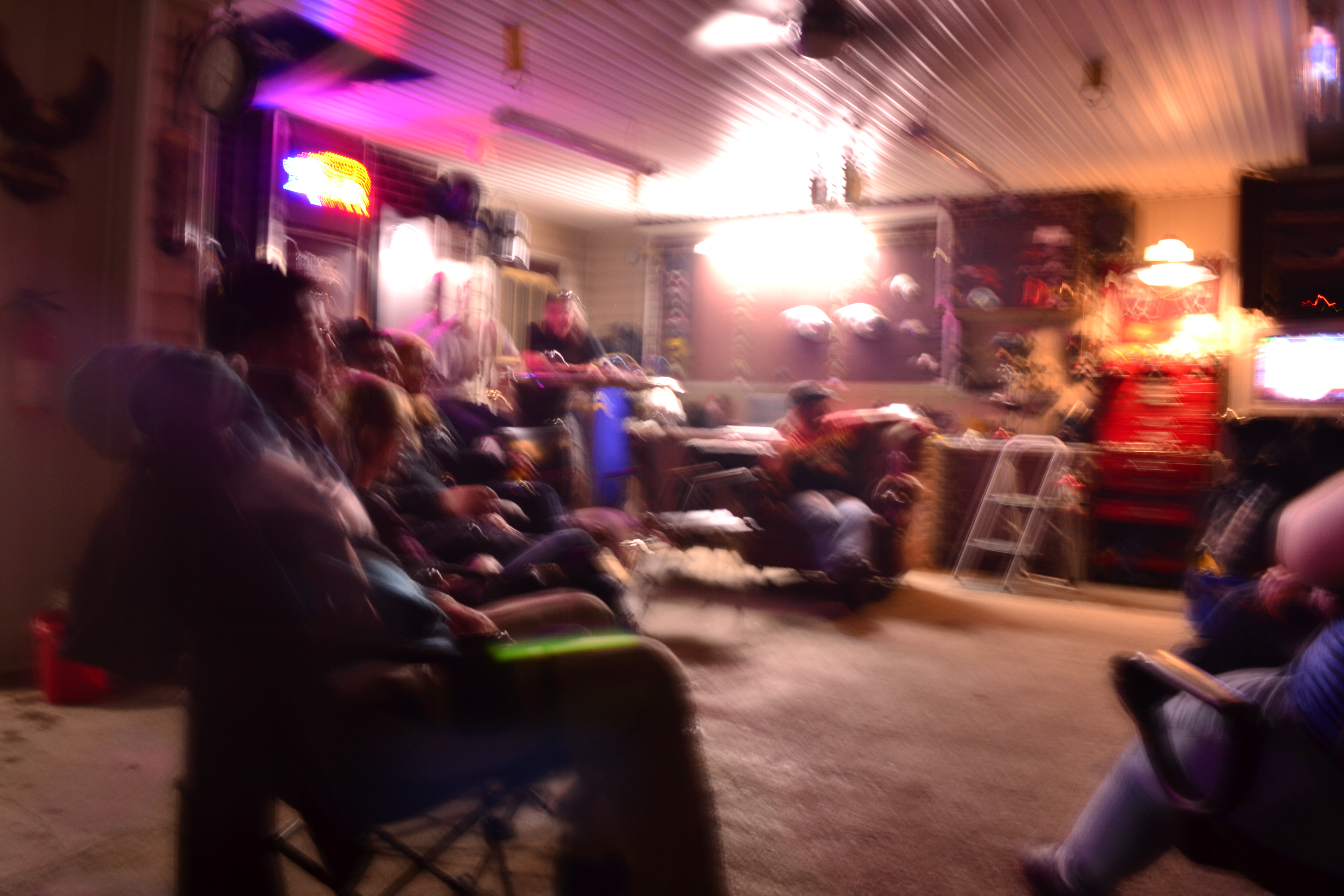J’aime cette photo floue du party dans le garage, tout le monde assis en cercle sur des chaises de plage, des chaises berçantes, des tabourets, de vieux fauteuils, etc. À bien y penser, cette photo répond à elle seule à la thématique de la typologie et je n’ai même pas pensé à l’utiliser ! À la place, j’ai exploité une idée poche, je l’ai écrit, à savoir les tubes de pâte dentifrice. Des neufs, des entamés, des tout droit, des enroulés sur eux-mêmes, des tubes qui tiennent debout parce que le bouchon est assez large, des tubes qui sont presque vides et donc tout aplatis, etc. Heureusement, chez Denauzier, il y a des tubes de pâte dentifrice en grande quantité. Nous sommes allés en soirée faire développer mes photos à la pharmacie, ça aussi je l’ai écrit. Étant donné que la pharmacie est l’endroit par excellence où se procurer des tubes de pâte dentifrice, Denauzier et moi nous sommes instinctivement dirigés vers l’allée réservée à l’hygiène buccale. Nous nous sommes plantés devant la soie dentaire, le rince-bouche, les brosses à dents… Au bout de quelques secondes, nous nous sommes regardés, pouffant de rire, et en même temps nous avons allumé, d’autant que j’avais à la main ma clef USB. Je riais en trottinant derrière Denauzier, en direction de la machine qui développe les photos, heureuse d’avoir pu vérifier, une fois de plus, et en référence à mon univers filmique, qu’un simple déplacement à la pharmacie était a kind of aventure.