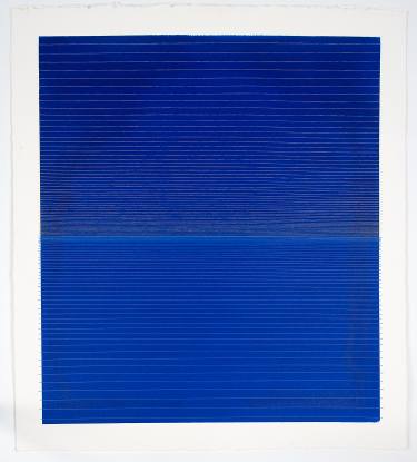 Ci-contre, une oeuvre classée Drawing, et non Painting, en provenance du site Saatchi, d’un artiste canadien Alexander Jowett, intitulée Poems to the Sea ou Indigo Dreaming. Il me semble que je devrais être capable de produire une toile similaire en m’appliquant pour tracer des lignes droites, mais, encore une fois, quelles ne seraient pas les surprises que je rencontrerais en cours de route si je m’y mettais. C’est à se demander si je serais capable de reproduire une toile sur laquelle il n’y aurait que de la couleur en dégradé, aucune ligne, aucun motif, et bien entendu aucun dessin, quand on sait que je ne sais pas dessiner. Bof.