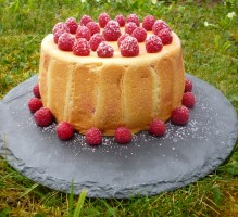 Mon beau livre de recettes est resté à Montréal, chez Emma, qui était autrefois chez moi. Alors, à l’instar du Steak suisse, c’est Google qui m’a aidée. J’ai trouvé exactement la recette de charlotte aux framboises, exprimée au poids, et non au volume. Ici, chez Denauzier, qui est aussi chez moi, je n’ai pas trouvé de balance, alors j’y suis allée au pif, une cuillerée à soupe très comble de farine, trois un peu comble de poudre d’amandes, deux moyennes de sucre. Ce fut un régal.
