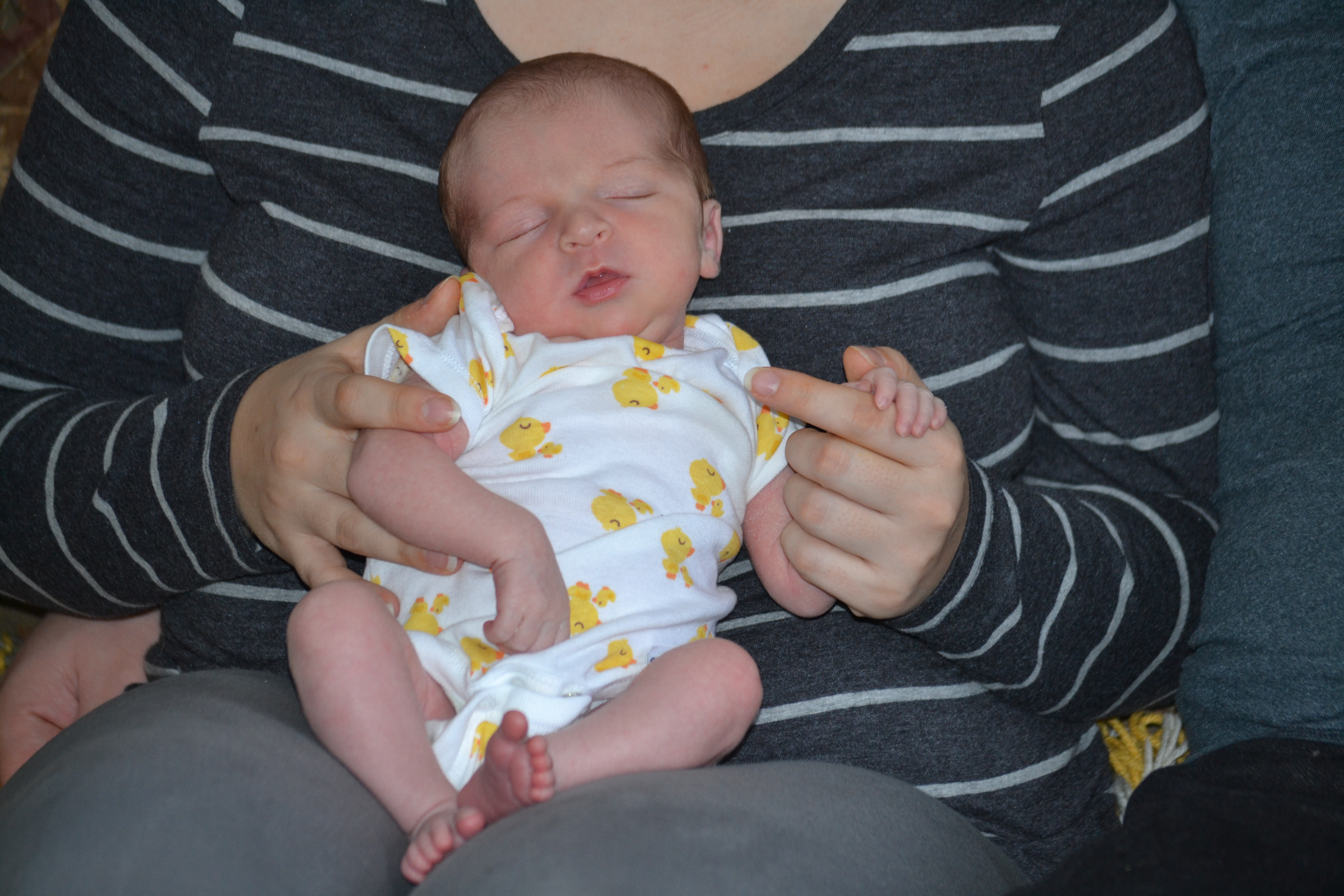 En première étape de notre voyage à Val-d’Or, Denauzier et moi avons dormi sur des matelas gonflables, sur le plancher de bois, dans le salon. Je me répète, je sais. Nous étions chez son fils et sa belle-fille, les heureux parents de la merveille de format mini qui apparaît en photo ci-contre. Nous avions apporté deux matelas individuels et un seul sac de couchage qui, une fois dézippé sur ses deux côtés, est devenu un semblant de couette. Malheureusement, les matelas ont eu vite fait de s’espacer, de telle sorte que j’ai passé une partie de la nuit couchée sur le plancher de bois. À ma grande surprise, le lendemain matin je n’étais pas à moitié morte et mon visage n’était pas trop défiguré par la fatigue. Dormir dans un sac de couchage sur un matelas gonflable déposé directement sur le plancher, c’était trois fois rien quand j’étais plus jeune. C’est maintenant un petit défi. Rien à voir avec l’ascension de l’Everest, bien entendu, juste un petit défi. Après cette nuit somme toute réussie, nous avons fait encore de la route pour nous rendre chez l’autre fils de Denauzier, qui habite Rouyn. Nous avons profité d’une petite heure pour relaxer avant le souper. Puis, après le souper, nous sommes allés saluer un monsieur très âgé, le beau-père de Denauzier. Le beau-père de la vie passée de Denauzier, car le beau-père de sa vie actuelle, c’est mon père. En entrant dans les appartements de ce monsieur très âgé, les néons au plafond m’ont fait mal aux yeux, mais au fil de la conversation cet inconfort s’est dissipé. Ensuite, rapidement car nous commencions à manquer de temps, nous nous sommes rendus au Canadian Tire où j’ai pu revisiter mon passé à l’allée des couverts. Un modèle en particulier, le Sabatier Louvre, m’a plu. Dommage qu’il n’y en ait pas eu de semblable dans le magasin où nous avons, Jacques-Yvan et moi, acheté le service de couverts que je n’ai jamais aimé, il y a de cela vingt-quatre ans. Cette nuit-là, je reviens à Rouyn, nous avons dormi dans une chambre du sous-sol, sur un lit peut-être un peu mou mais confortable. Encore une fois, le lendemain matin, je me suis trouvée pas trop défaite devant le miroir. Je n’ai pas eu le temps de m’observer longtemps. À peine étions-nous debout qu’il nous fallait faire de la route à nouveau, pour un petit-déjeuner cette fois, à mi-chemin entre Rouyn et Val-d’Or, dans la neige, la glace et la poudrerie. Puis, rebelotte à Val-d’Or pour un dîner sur le pouce auprès des heureux parents et de la petite. Vers 15 heures, nous avons entamé notre retour à la maison, dans la neige, la glace, la poudrerie et, en élément supplémentaire, la noirceur. Nous nous sommes arrêtés au Mont-Tremblant, pas tant pour souper, bien que nous y ayons soupé, que pour nous détendre un peu des conditions météo. Toujours est-il que dans la dernière demi-heure de route, il était passé 22 heures, je me suis mise, de fatigue, à avoir chaud comme si j’étais dans un sauna. Denauzier, de son côté, ne parlait pas. Une fois à la maison, nous nous sommes presque immédiatement dirigés vers la chambre à coucher. Je dirais que mon mari n’a pas mis trente secondes à sombrer dans le sommeil.