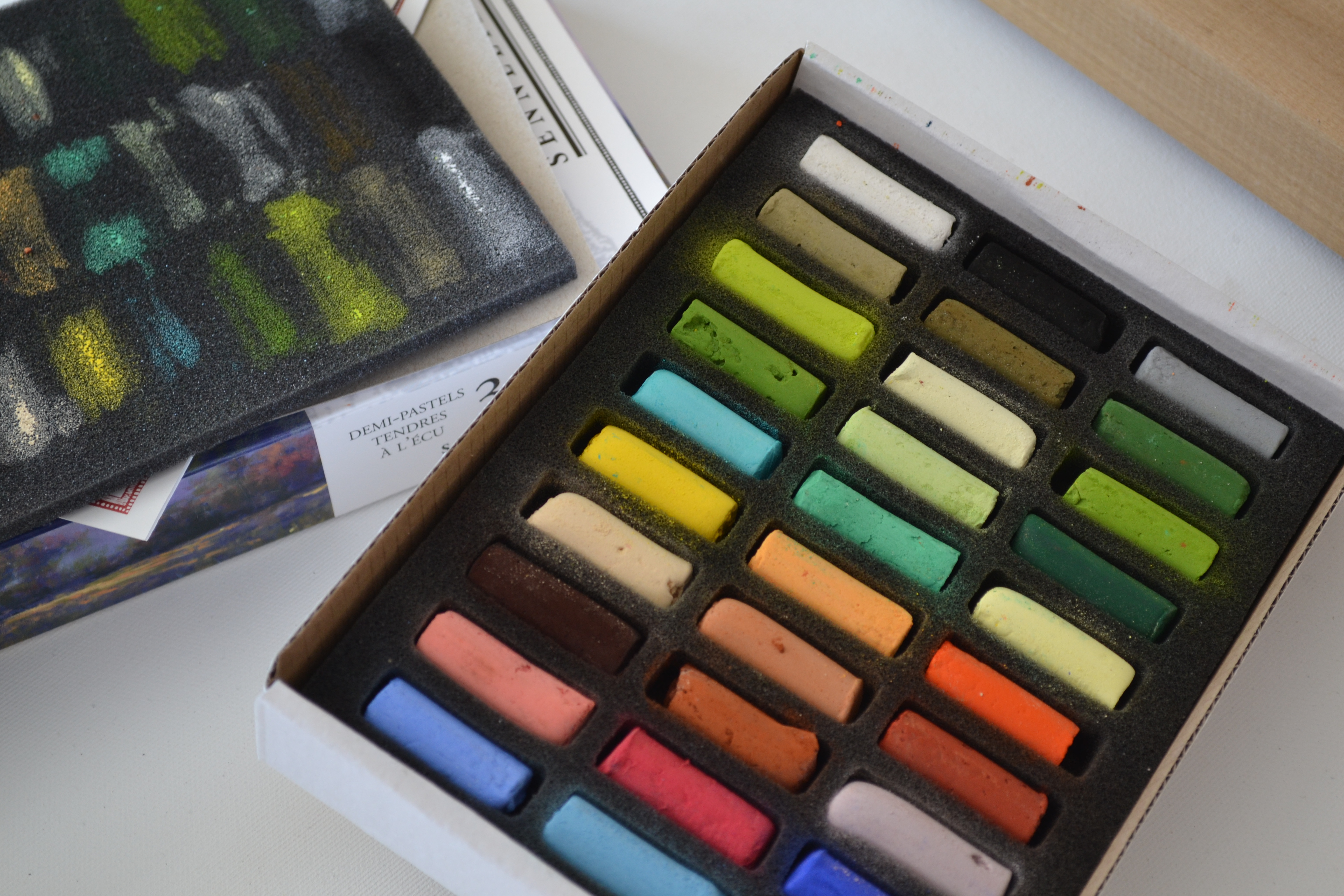 Je me suis acheté cette boîte de pastels hier au magasin Omer DeSerres de la rue Ste-Catherine, dans le quartier latin. J’ai utilisé pour ce faire la carte cadeau de 125$ qui m’a été offerte par mon service quand j’ai pris ma retraite en juin dernier. C’est quand même assez cher, une boîte de trente demi-pastels, au-delà de 70$ en incluant les taxes. J’ai aussi acheté du papier d’assez grand format, de la marque Canson, parce qu’il n’y avait plus de papier de la marque Somerset. Avant l’achat des pastels, nous avons fait un arrêt, Bibi et moi, au sous-sol de l’église Notre-Dame-des-Neiges, à Côte-des-Neiges, y manger des crêpes fabriquées par les scouts pour financer leurs camps d’été. Je suis tombée sur deux crêpes trop épaisses dans l’une desquelles j’ai trouvé un cheveu court, peut-être blond. J’ai tout mangé pareil, pour me donner des forces d’autant qu’il faisait très froid, mais d’ordinaire j’aurais mangé trois ou quatre crêpes, alors que je me suis limitée à deux. Chouchou était avec nous, tant dans le sous-sol qu’après, chez Omer DeSerres. Après Omer, nous avons fait des courses alimentaires, et après l’alimentaire nous avons déposé chouchou chez elle, qui était autrefois chez moi. Nous sommes quand même montées quelques minutes Bibi et moi constater de quelle manière chouchou avait transformé certains agencements, surtout quant à la disposition des nombreuses œuvres, essentiellement les miennes mais quelques-unes sont les siennes, qui décorent tous les murs. Après cet aller-retour à Montréal, je me trouve aujourd’hui très fatiguée. Il y a quelque chose que j’aime, de ces jours de grande fatigue : un rien me fait du bien. Je regardais une publicité de maillots de bain pour femmes de taille forte, tout à l’heure sur le web, et cela me faisait du bien. J’ai cliqué pour faire défiler les modèles –de femme et de maillot–, j’ai reçu toutes sortes de couleurs sur mon écran et cela m’a fait du bien. Le problème, c’est que le corollaire contraire est tout aussi vrai : le moindre mouvement, une fois que je cesse de cliquer et que je me lève, s’avère forçant.