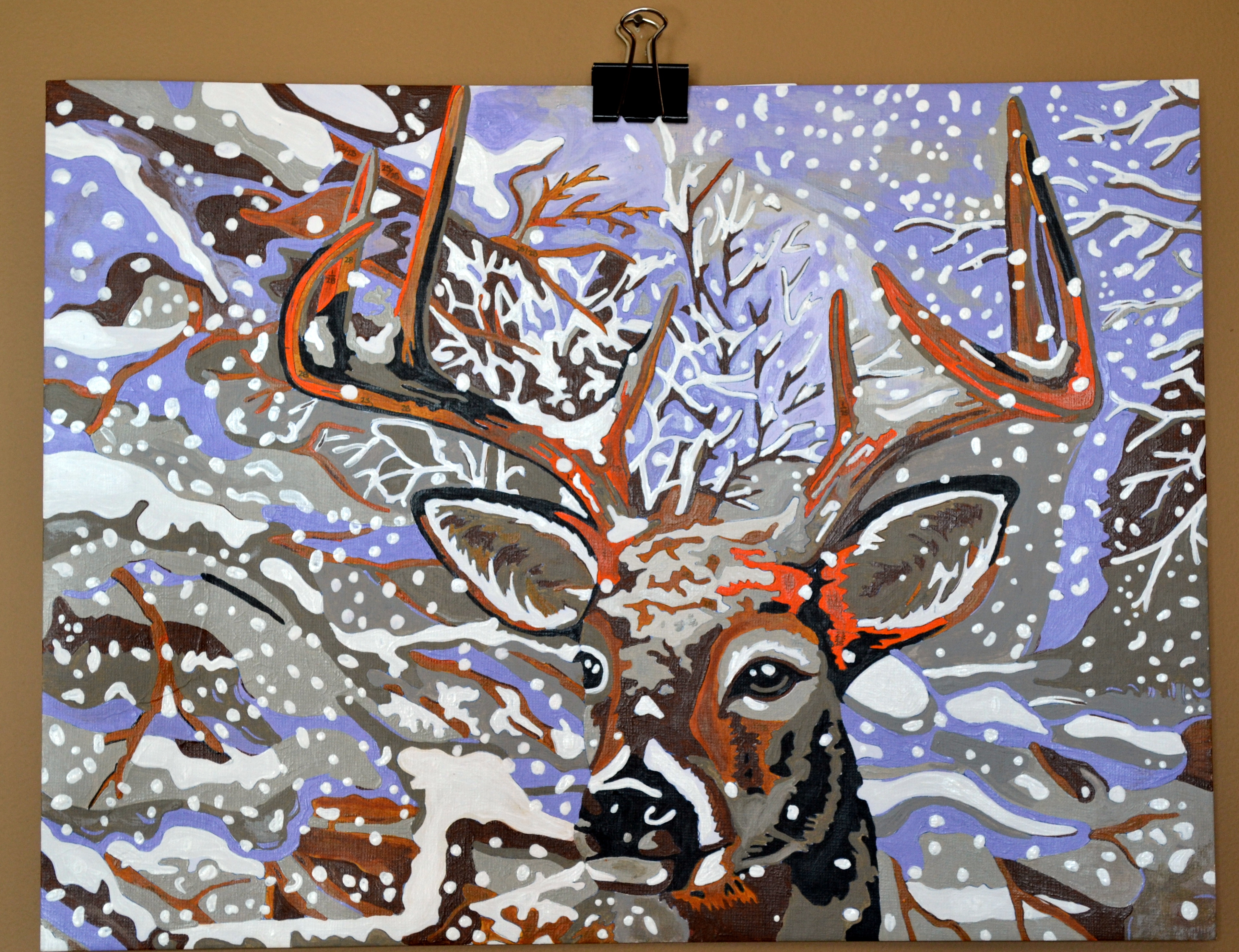 Alors, aujourd’hui, où en suis-je ? À la présentation, comme en témoigne la photo vedette, de mon chevreuil fini. Je n’entame pas de nouveaux projets de peinture ces prochains jours car nous partons vendredi pour l’Abitibi. J’entamerai un projet nouveau à notre retour, mais je risque de manquer de temps entre notre retour et le dimanche de Pâques. En outre, je suis allée chez le médecin ce matin et j’ai une bronchite, alors disons que je me déclare en repos de peinture pendant quelque temps, mais pas en repos de blogue.