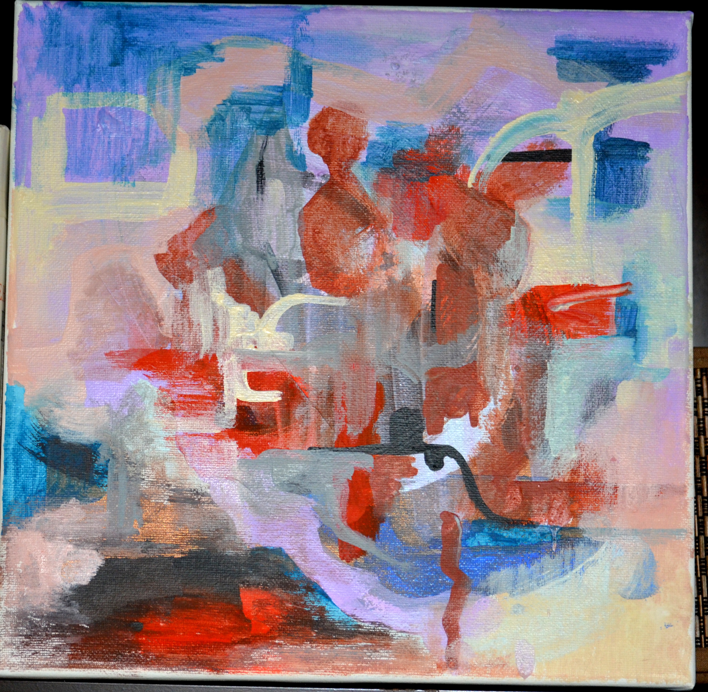 J’ai regardé mes trois toiles qui étaient placées en colonne, une au-dessus de l’autre. J’ai commencé par les prendre une à une, en défaisant la colonne. Je n’en ai gardé qu’une devant moi. J’entendais battre ma valve dans le silence de mon bureau. Elle battait vite car j’étais nerveuse. Je me suis demandé si je voulais aller vers une approche figurative, puis je me suis rappelé que je ne suis pas capable de maîtriser la perspective, que je ne suis pas non plus capable de dessiner, alors à quoi bon me poser la question, me suis-je dit. J’ai ensuite pensé que certains artistes vont vers un type d’abstraction en particulier. Mon ami Yvon, par exemple, peint des météorites qui se déplacent dans l’univers en laissant des masses longilignes derrière eux. J’ai pensé aussi aux nombreux artistes qui affectionnent les natures mortes. Avant de me perdre encore plus en pensant à tous les artistes de la terre, je me suis recentrée. Je me suis dit que l’important était d’avoir du plaisir. Qu’est-ce qui me fait plaisir ?, me suis-je demandé. Écouter le son des poils du pinceau qui grattent tranquillement le canevas me fait plaisir, fut ma réponse. Alors je vais tracer des lignes, sans penser à rien d’autre qu’au son des poils, des lignes grosses, fines, des masses, des courbes, des perpendiculaires, des formes fermées et d’autres ouvertes. Je vais ne faire que ça et oublier le reste, me suis-je dit.