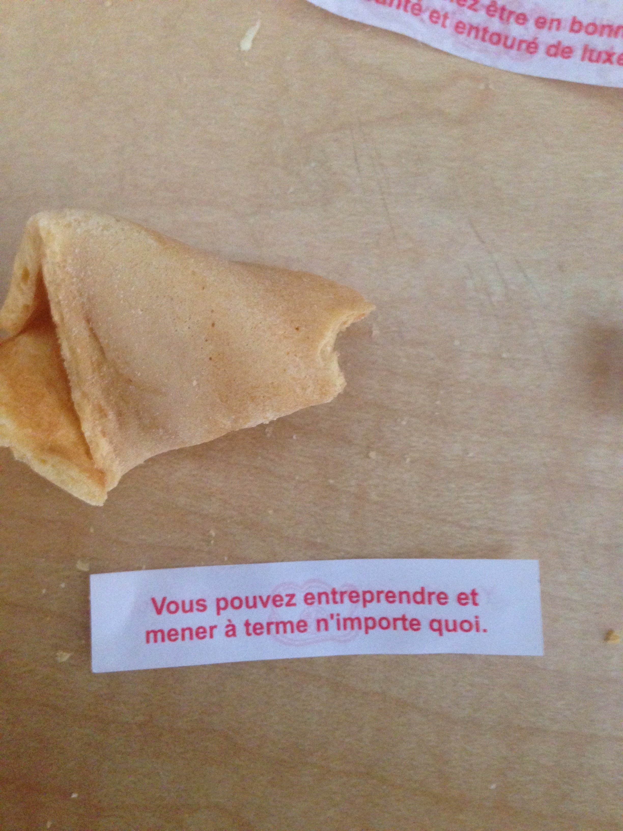 – Non, c’est un message de biscuit chinois, ai-je répondu.