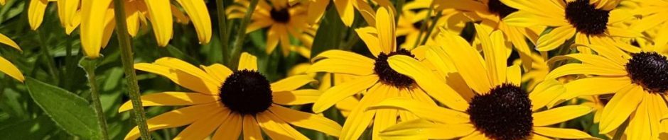 Est-ce qu’il vente en ce moment ? Oui, d’ailleurs je vois valser des feuilles de bouleaux dans les airs. Malheureusement, les prévisions de la météo sont à la pluie dans les prochaines heures. Quelques éclaircies distribuent néanmoins sur les champs avoisinants une belle lumière jaunâtre, de la couleur des rayons du soleil. Elle pénètre dans mon bureau en formant des stries sur les objets où elle se pose, et me fait quitter mon clavier pour l’observer. C’est la minute de poésie de la journée, doublée de la présence de chatonne qui se lèche la patte sur le rebord extérieur de ma fenêtre. Elle miaule parce qu’elle veut entrer. Ça y est, elle s’étire, se tient debout en s’appuyant de ses pattes de devant sur les vitres fraîchement lavées par mon mari. La lumière émet aussi d’infimes mouvements vibratoires qui caressent les murs. Dans un élan pseudo spirituel, je lui demande de répandre une énergie positive et pourquoi pas curative, on ne sait jamais, autour de moi. Puis, avant que les vitres ne soient trop couvertes d’empreintes de chatonne, je me lève pour la faire entrer. Sur le tapis du seuil de la porte, elle a déposé une souris. Ce n’est pas pour rien qu’elle miaulait, elle avait hâte que je découvre cette offrande –que j’ai lancée, non sans avoir d’abord félicité et caressé Mia, dans les rudbeckies.