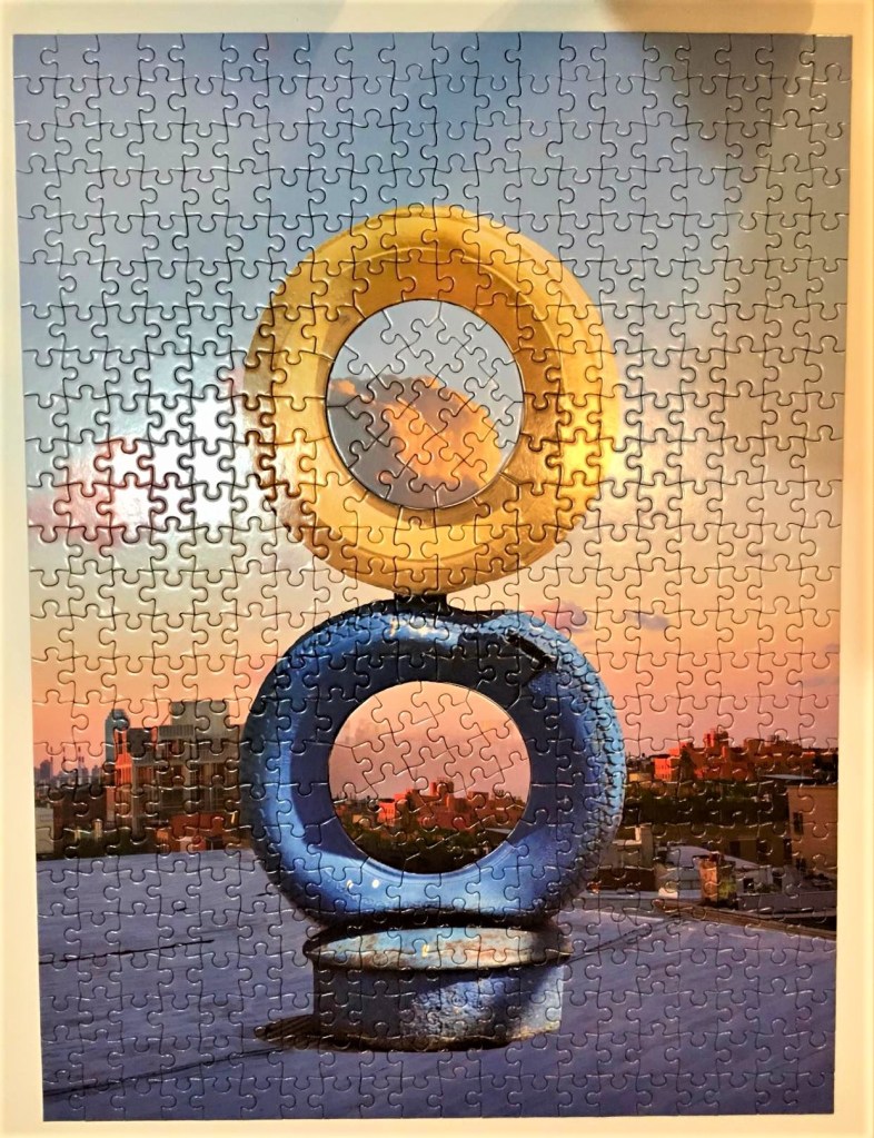 En Ontario, nous avons flâné une bonne demi-heure dans un magasin, en grande partie pour nous réchauffer, Emma et moi, la température étant exécrable ce jour-là. Dans ledit magasin se trouvaient des casse-tête et bien entendu Emmanuelle les a vus. Nous en avons acheté deux, dont celui ci-contre, par solidarité pour le peuple Ukrainien. Au départ, bien sûr, le casse-tête n’a rien à voir avec le conflit qui sévit actuellement.