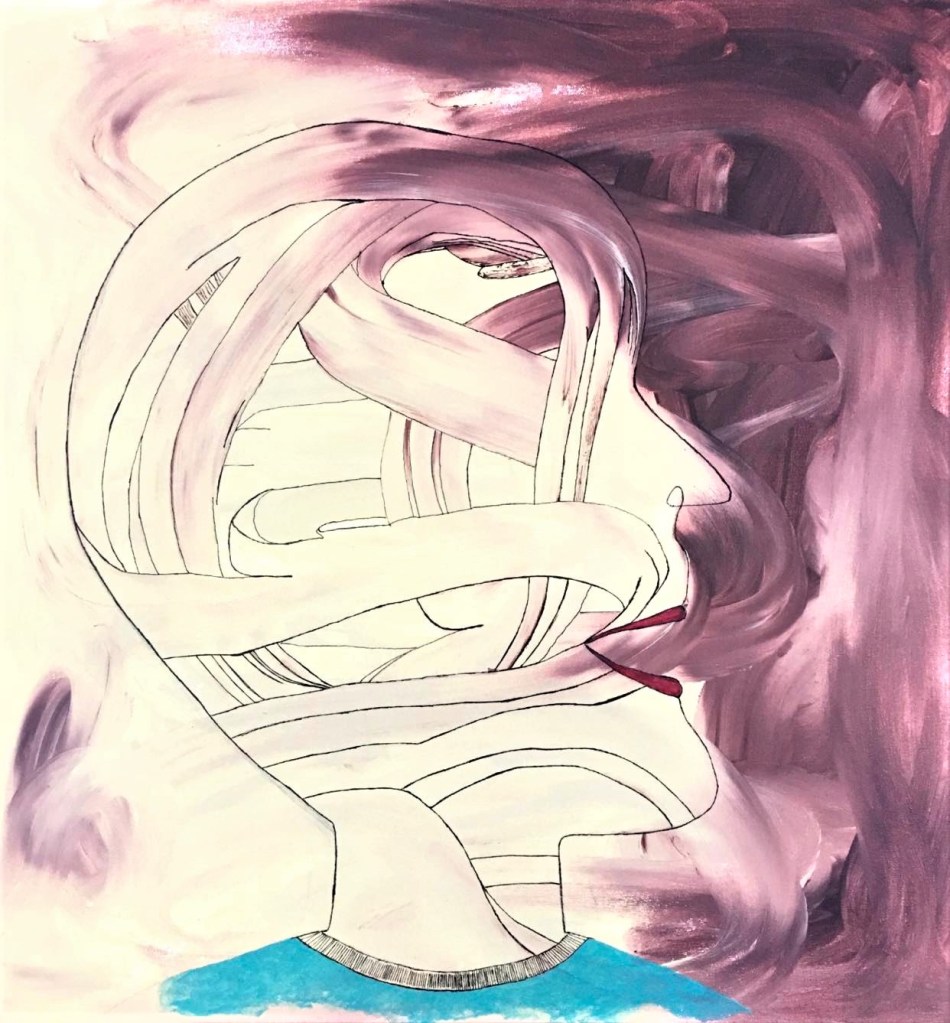 Je me demande si je dois retirer le fond marron à droite, et la sorte de beige indéfini à gauche, maintenant que j’ai tracé, avec un stylo à encre noire, les marques de pinceau qui étaient visibles sur la surface de la toile, dans l’espace que j’ai restreint à celui d’un individu vu de profil.